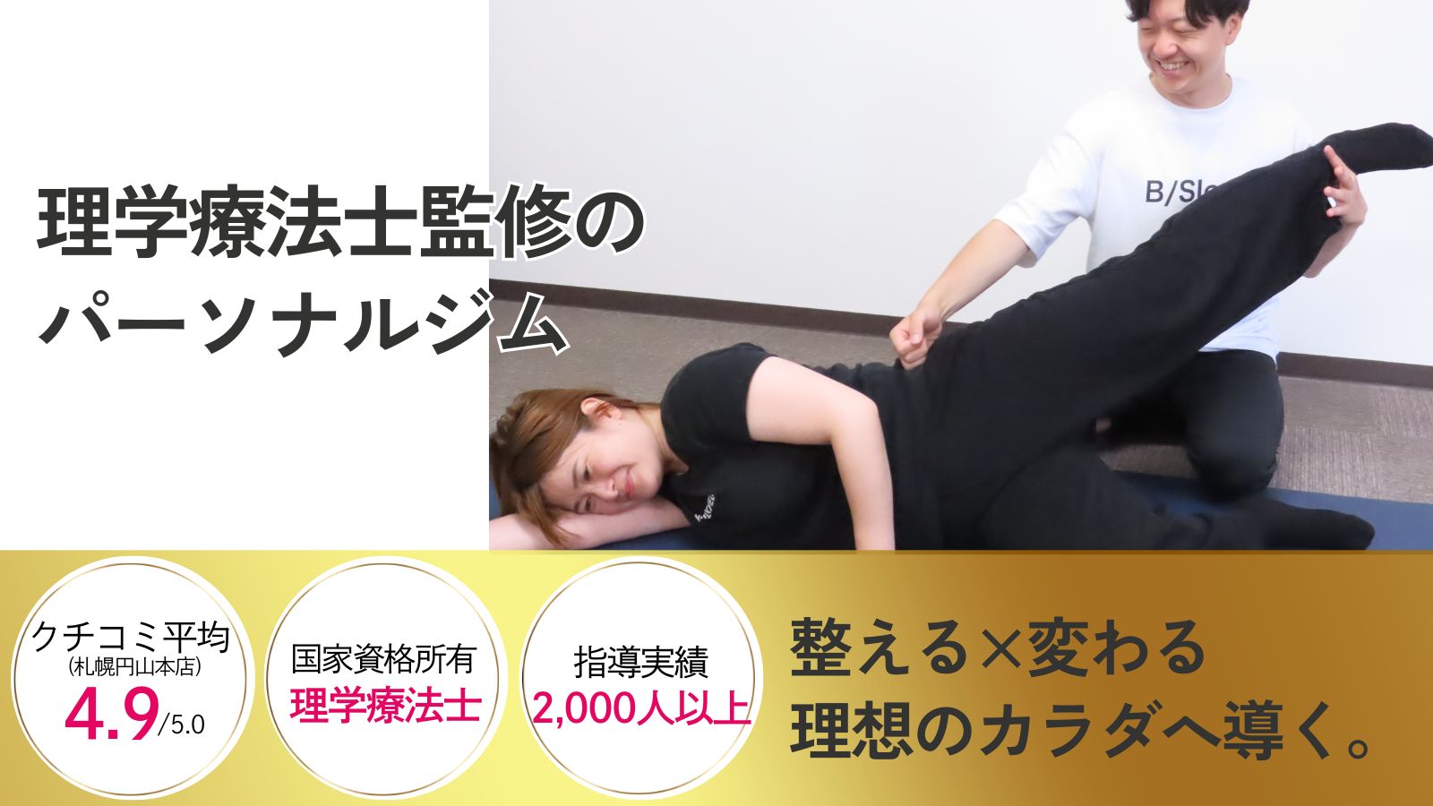 パーソナルジムB/Sleek室蘭は、「整える×変わる」を提供する、お客様に寄り添う唯一のパーソナルジムです。